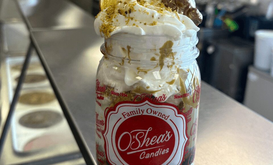 One of the best parts about visiting O’Shea’s Candies? Mixing and matching ice cream flavors to find your perfect pairing. Go traditional with vanilla and chocolate, or get adventurous with peanut butter, caramel, fruit, and cookie combinations.