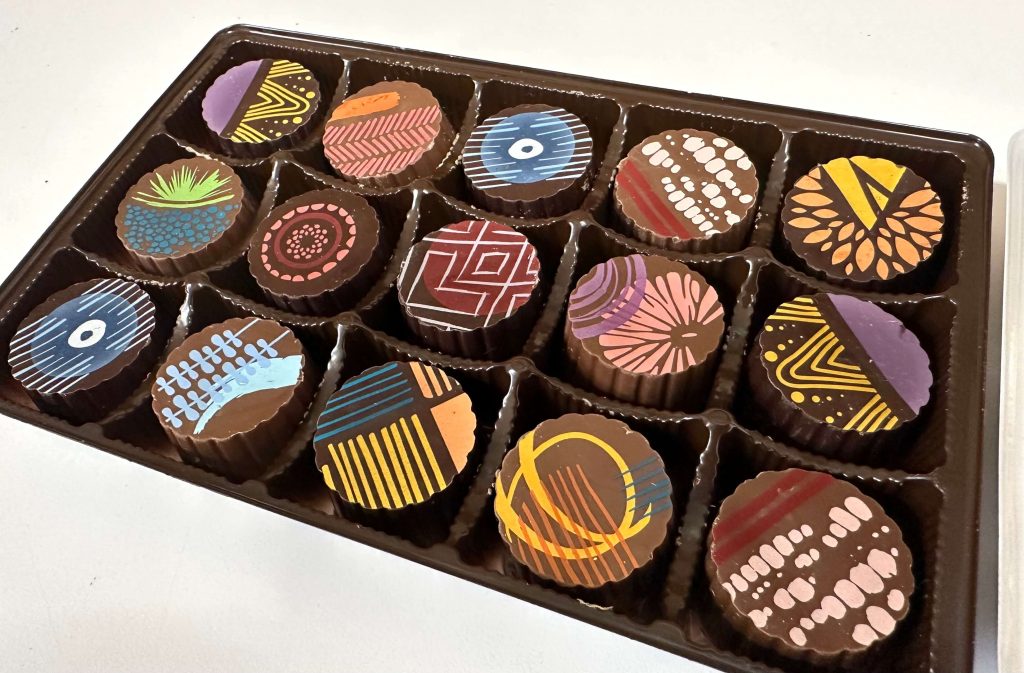 Our 15-piece window box offers an elegant presentation that showcases 12 distinctive flavors, blending traditional favorites with exciting, modern creations. From creamy classics like silky milk chocolate and rich dark chocolate ganache to adventurous flavors such as raspberry champagne, caramel, and Irish Cream, there’s something for every chocolate lover to discover. The assortment is thoughtfully crafted to provide a perfect balance of smooth textures, bold flavors, and visual artistry.