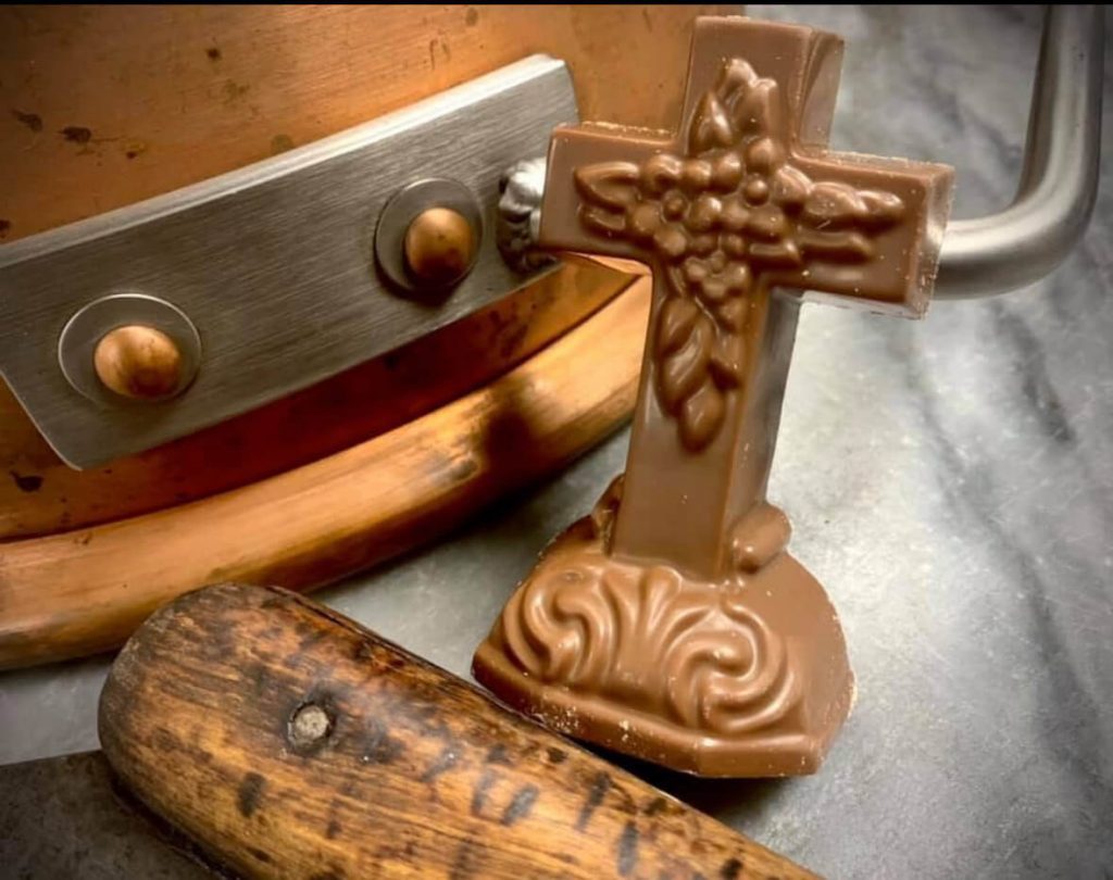 Our crosses are poured into our original chocolate moulds, and each is trimmed. What would Easter be without a giant, solid milk chocolate cross!- Since 1934, O’Shea’s Candies has been crafting Easter chocolates the old-fashioned way, preserving a legacy of tradition, quality, and family pride. Nestled in the heart of Pennsylvania, this beloved candy maker uses time-honored recipes and small-batch methods to create chocolates that capture the essence of Easter magic. Each piece is made with care—rich, creamy fillings are hand-poured, then dipped or coated in O'Shea's smooth chocolate, just like they were generations ago. From coconut eggs to peanut butter meltaways, every bite brings back memories of childhood baskets and springtime joy. At O’Shea’s, Easter isn’t just a season—it’s a cherished celebration of craftsmanship and community. The familiar taste and nostalgic charm of their chocolates have made them a holiday tradition for countless families. With every piece, O’Shea’s delivers more than candy—we deliver warmth, heritage, and a sweet connection to simpler times.